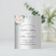 Um fundo de olhar mal prateado. Decorado com uma flor branca, uma flor de pénia e um eucalipto verde de cor aquosa. Personalize e adicione seus nomes e detalhes. 1 folha = 1 convite impresso de borda a borda.