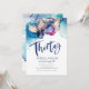 Convite aniversário de 30 anos moderno com marinho azul, aqua e abstrato cor-de-rosa e uma página posterior correspondente.