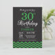 Convite aniversário de 30 anos com Chevron Negro e Verde. Chalkboard. Aniversário Adulto. Convidam o Homem ou a Mulher Bday. Para mais personalização, clique no botão "Personalizar" e use nossa ferramenta de design para modificar este modelo.
