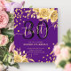 Elegante Glam Dourado Purple Floral Glitter aniversário de 30 anos do Script de convite modelo com disposição de flores, confete de brilho e script de tipografia moderna.