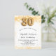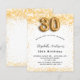 Para uma aniversário de 30 anos elegante. Um fundo branco chic. Decorado com brilho de ouro falso, brilhos. Personalize e adicione um nome, idade e detalhes da festa. O nome é escrito com um script de estilo manuscrito. Número 30 com letra de estilo de balão.