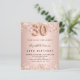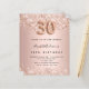 Para um aniversário de 30 anos elegante. Um fundo de aparência metálica falsa rosa dourado. Decorado com ouro rosa, falso cor-de-rosa, brilhos. Personalize e adicione um nome e detalhes da festa. O nome é escrito com um script de estilo manuscrito, número 30 com fontes de estilo de balão.