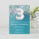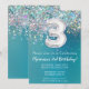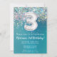 convite de festas de aniversário de 3 anos para o Teal e o aniversário de 3 anos Silver Glitter para uma menina de 3 anos com o moderno roteiro escrevendo e balões de folha divertida.