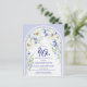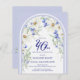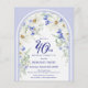 O modelo Elegante aniversário de 40 anos apresenta um arco floral Boho feito de margaridas brancas e flores silvestres azuis. Este elemento faz parte da Coleção Floral de Azul e Branco da Arca de Boho.