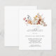 Abóbora branca moderna e elegante e flores de queda design floral. A paleta de aquarelas moles é uma sofisticada mistura de cor-de-rosa macio e ouro amarelo e castanho rico em escuro. A queda deixa à volta da abóbora branca para uma apresentação especial no outono. Perfeito para a sua festa de aniversário de outono.