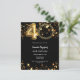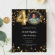 Um convite para fotos moderno e na moda para uma festa de aniversário de 40 anos. Um fundo preto clássico, decorado com estrelas douradas falsas. Personalize e adicione os detalhes da sua festa. 1 folha = 1 convite impresso de borda a borda.