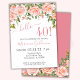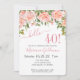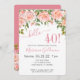 Convites de aniversário de 40 anos floral floral cor-de-rosa - festa 'olá 40!' com fundo branco e belo impressão que você pode personalizar com toda a sua informação de festa de aniversário. com cor cor de pêssego e rosa - elegante.