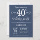 Convite para aniversário de 40 anos com fundo azul. Aniversário Adulto. Homens ou Mulheres no Dia Convidam. 13 15 16º 18º 20 21rua 30 40º 50º 60º 80 de 70 100º, qualquer idade. Para mais personalização, clique no botão "Personalizar" e use nossa ferramenta de design para modificar este modelo.