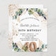 Para uma festa de aniversário de 40 anos. Um fundo branco decorado com verde de eucalipto e folhas de ouro. Pontos de brilho falsos do ouro. Personalize e adicione seus nomes e detalhes do casamento. Letras pretas e ouros coloridas. O número 40 é escrito com a fonte do estilo do balão. Traseira: fundo branco e pontos brilhantes de falso ouro.