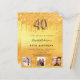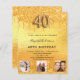 Um convite moderno, na moda e glamouroso para um aniversário de 40 anos. Um fundo metálico de ouro falso com pingos de brilho falso, aparência de pingar tinta. O nome é escrito com um moderno estilo escrito à mão. Personalize e adicione os detalhes da sua festa e 3 fotos. O número 40 é escrito com uma fonte de estilo de balão, script.