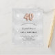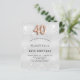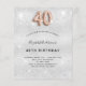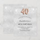 Um convite moderno, na moda e glamouroso para um aniversário de 40 anos. Um fundo com aparência de prata falsa, decorado com poeira brilhante. Personalize e adicione o seu nome e detalhes da festa. O número 40 é escrito com uma fonte do estilo do balão rosa dourado, script.