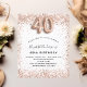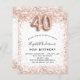 Para um aniversário de 40 anos elegante. Um fundo branco. Decorado com rosa dourado, cintilação falsa rosa, faíscas. Personalize e adicione um nome e detalhes da festa. O nome é escrito com um script de estilo manuscrito, número 40 com fontes de estilo de balão. 1 folha = 1 convite impresso de borda a borda.