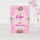 Um cartão de 44 para sua esposa. Uma traria elegante em conjuntos cor-de-rosa das quatro rosas cor-de-rosa. O fundo é um padrão rosa pálido de flores. Uma carta adorável para enviar à sua esposa no seu aniversário de casamento.