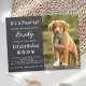Festa de Cachorrinho! Hospede o aniversário do seu cachorrinho ou cão com este simples convite de festa de aniversário de cão com design de quadro-negro de ardósia rústica e impressão de pata.