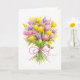 Belo e belo buquê de tulipa em cumprimentar o cartão por um dia incrível de celebração! Um presente colorido de flores fará deste um aniversário muito especial e feliz! Dentro Verse: Desejando um dia brilhante e bonito! Feliz aniversário. Trabalho de arte de aquarela original e design por Audrey Ascenzo. ❤️