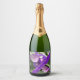 Esta inusitada etiqueta colorida do vinho foi projetada para um casal 11º aniversário de casamento, tradicionalmente o aço, sendo o alternativo de flores a Glória da Manhã. Com isto em mente, usei a minha imagem de uma glória de manhã roxa e de um texto editável. Adorável adorar uma garrafa especial de espumante como um presente especial, e ideal para festas e celebrações.