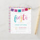 Um convite de aniversário de crianças mexicanas fofo. Apresentando "fiesta" em um tipo moderno de escrita em cores vibrantes de verão. Seus detalhes aparecem em uma simples tipografia com um confete de triângulo ao seu redor com um beliche no topo. Este convite de aniversário reverte para um padrão geométrico estranho. Como parte da seleção do orçamento aqui no Zazzle, estes convites não vêm com envelopes nem ajustado de forma suave em um envelope de tamanho padrão. O tamanho mais próximo é A6, mas haverá um intervalo de aproximadamente meio polegada. Se não se importa com a falta de humor, você poderia usar envelopes A6 tão disponíveis. Caso contrário, esse design pode ser transferido para um formato padrão 5x7 (que vem com envelopes) usando a ferramenta de transferência design. Como guia geral, a partir do momento do escrevendo, 100 convites orçamentários (incluindo um desconto por volume) custariam cerca de US$ 39, enquanto 100 convites padrão 5x7, incluindo envelopes, custariam aproximadamente US$ 135. Sua quilometragem pode variar dependendo dos códigos de promocionais disponíveis do Zazzle, das vendas em todo o site ou das mudanças nos preços.