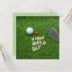 Aniversário de golfe com amor e bola de golfe e areia no cartão de aniversário de grama verde