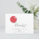 Projetado para combinar com o Convite de Aniversário de Um Ano Balão Vermelho, este cartão de balão simples escreve agradecimentos aos seus convidados de festa. Personalize a saudação e a assinatura. A cor do balão também está disponível em rosa claro e azul.