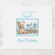 Bonito a bordo para um cheio de alegria e maravilha! Convide amigos e família para o seu primeiro aniversário com nossos adoráveis Rótulos de Vinho do Primeiro Aniversário. Este charmoso design apresenta um ursinho de pelúcia bonitinho agindo como um trem alegre, um trem azul com um urso-do-Teto sentado no trem, trazendo um toque lúdico e nostálgico para o dia especial do seu filho.