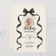 Convide em estilo com este Convite de Aniversário do Arco Negro com Foto! 🖤 🎀 Projetada com um fundo bege chico e uma fita inspirada em coquete, esta elegante modelo funciona lindamente para qualquer idade — de um primeiro aniversario a uma celebração de marco. Adicione a sua foto favorita e personalize os detalhes para criar um convite para eternos, na moda, que é perfeito para as meninas que amam uma vibração feminina e elegante.