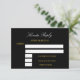Placa RSVP de Resposta Dourada e Preta Birthday Elegant