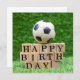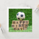 Aniversário do futebol com bola e palavra de aniversário feliz