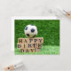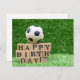 Aniversário do futebol com bola e palavra de aniversário feliz