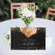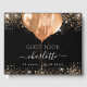 Um fundo na moda preto com poeira falsa dourada brilhante. Decorado com balões ouros. Personalize e adicione um nome, idade e data. Personalize e adicione seu texto na coluna. O nome é escrito com um moderno estilo escrito à mão com traços. Para manter as hastes, exclua apenas o nome da amostra, deixe os espaços ou emoji na frente e depois do nome.