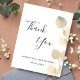 Um cartões de agradecimentos para um aniversário de 50 anos (ou qualquer idade). Um fundo branco chic decorado com eucalipto ouro. Na frente, um grande script de cor preta, escrito à mão, e o texto: Obrigado, seu texto, título e uma data. Voltar: Personalize e adicione seu nome e nota de agradecimento.