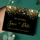 Uma cinta e moda Salve a placa Date para uma festa de aniversário 40th (ou qualquer idade). Um fundo preto decorado com brilhante brilho de ouro falso. Personalize e adicione uma data, nome e texto. O texto: Salvar a Data é gravado com um script de estilo com letra de tendência grande.