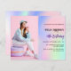 Um fundo holográfico rosa, roxo e verde de menta. Personalize e adicione uma foto e detalhes da festa. 1 folha = 1 convite impresso de borda a borda.