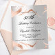 Um fundo de olhar mal prateado. Decorado com veias rosa douradas. Personalize e adicione um nome, idade e detalhes da festa. O nome é escrito com um script de estilo manuscrito. 1 folha = 1 convite impresso de borda a borda.