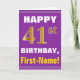 Este simples design de cartão de saudação com tema de aniversário apresenta um desejo de aniversário quente como "FELIZ 41ruas BIRTHDAY, First-Name!" na frente, em texto a negrito sobre um fundo de cor roxa. O número de aniversário tem uma aparência falsa e imitada de cor dourada. O nome na frente pode ser personalizado. O dentro apresenta uma mensagem de aniversário personalizável. Um cartão de boas-vindas como este pode ser uma maneira divertida de fazer votos de aniversário a alguém que comemora o seu quarenta primeiro aniversário. [~Z0000277]