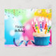 Aniversário feliz moderno cor-de-rosa-azul com marca personalizada