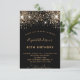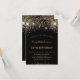 Um convite moderno, na moda e glamouroso para uma festa de aniversário 40ª (ou qualquer idade). Um fundo preto decorado com brilho falso e brilho. O nome é escrito com um moderno ouro escrito com letras no estilo à mão. Personalize e adicione os detalhes da sua festa.