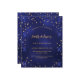 Um convite de aniversário glamouroso para ele e para ela. Um fundo azul marinho decorado com estrelas douradas falsas. A cor azul é irregular. Personalize e adicione um nome e detalhes da parte. Adicione o ano de nascimento e o ano da celebração Back: fundo azul marinho e estrelas ouros. 1 folha = 1 convite impresso de borda a borda.