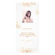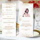 Cartão de menu de festa de aniversário. Personalize e adicione um nome, idade, data e menu. Um fundo branco chic, decorado com poeira falsa dourada. Letras coloridas com ouro. Adicione uma foto da aniversariante, fatos e nomes divertidos.