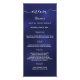 Cartão de menu de festa de aniversário. Personalize e adicione um nome, idade, data e menu. Um fundo azul marinho. A cor azul é irregular. Letras brancas coloridas. Voltar: adicione uma foto, fatos e nomes divertidos (família ou amigos)