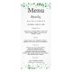 Cartão de menu de festa de aniversário. Personalize e adicione um nome, idade, data e menu. Um fundo branco. Decorado com confete verde, texto preto. Adicione uma foto da aniversariante, fatos e nomes divertidos.