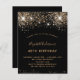 Um convite moderno, na moda e glamouroso para uma festa de aniversário 40ª (ou qualquer idade). Um fundo preto decorado com brilho falso e brilho. O nome é escrito com um moderno ouro escrito com letras no estilo à mão. Personalize e adicione os detalhes da sua festa. Voltar: seu código QR para seu site para obter mais detalhes e RSVP on-line