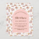 Um quadro de arco sobre um padrão de grama pampas e flores cor-de-rosa e uma cruz ouro. Personalize e adicione um nome e detalhes. 1 folha = 1 convite impresso de borda a borda.