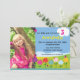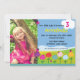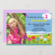 Adorável alfinete com flores estilizadas bonitas Convite de aniversário da garota em um bonito campo verde com um céu azul brilhante. Fácil de mudar a foto com a foto do seu filho. Personalize este belo convite à sua informação e à idade do seu filho. Crédito da fotografia: https://pixabay.com/photos/girl-child-children-toddler-youth-3402351/