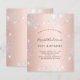 Um convite moderno, na moda e glamouroso para uma festa de aniversário de 21 ruas (ou qualquer idade). Um fundo metálico rosa dourado falso com aparência suja de poeira brilhante prateada. O nome é escrito com um moderno script de estilo colorido de cinzas. Personalize e adicione os detalhes da sua festa.