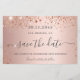 Uma cinta e moda Salve a placa Date para uma festa de aniversário 40th (ou qualquer idade). Um fundo cor-de-rosa feminino, rosa dourado decorado com faíscas falsas. Personalize e adicione uma data e nome/idade 40. Letras rosa escuras de cor dourada. O texto: Salvar a Data é gravado com um script de estilo com letra de tendência grande.