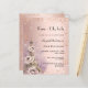 Um convite moderno, na moda e glamouroso para uma festa de aniversário 18 (ou qualquer idade), tema parisiense. Um fundo rosa de gradiente dourado com faíscas falsas e a torre Eiffel com algumas flores. O nome é escrito com um moderno estilo escrito à mão. Personalize e adicione os detalhes da sua festa. 1 folha = 1 convite impresso de borda a borda.
