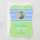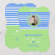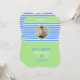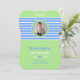 Aniversário Stripes Blue ⎮ White Green Invitation tem perfeita mistura de design moderno para sua festa de aniversário com um tema de listras, azul e verde, além de um monograma e foto para um toque mais personalizado.