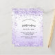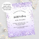 Para uma elegante festa de aniversário 40th (ou qualquer idade). Um plano de fundo branco e violeta. Decorado com brilho violeta, faíscas. Personalize e adicione um nome e detalhes da parte. O nome é escrito com um script de estilo manuscrito. 1 folha = 1 convite impresso de borda a borda.