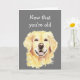 Aniversários Agora que você é velho Você passa meia hora rolando para entrar no seu ano de nascimento. Engraçado no Morro com um Ouro bonito e retriever Cachorro.