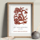 Celebrar o Ano da Cobra com esta bela e amigável impressão. Apresentando um cobra fino curvando ao redor das flores em um estilo clássico de corte de papel vermelho lacquer, este impressão personalizado é perfeito para pendurar na parede ou deslizar em um estoque. Simplesmente personalize o nome e o ano de nascimento do receptor para criar um presente verdadeiramente único e ponderado. Excelente para o período sazonal e o aniversário. Comprar um quadro da sua loja local para completar a apresentação ou, opcionalmente, comprar um quadro do Zazzle no check-out por um custo extra.